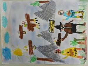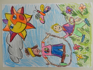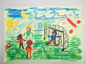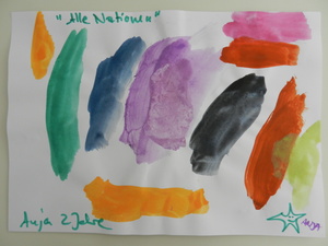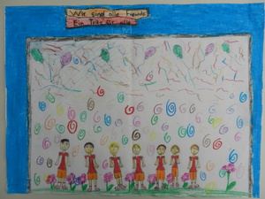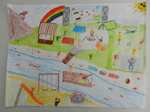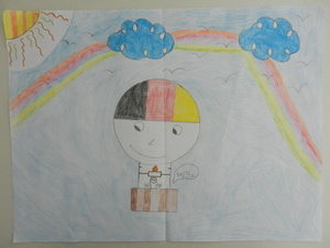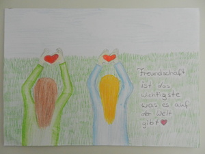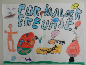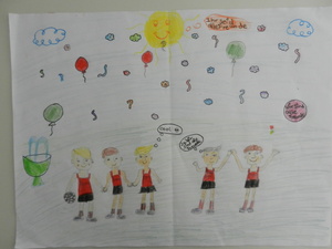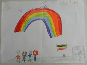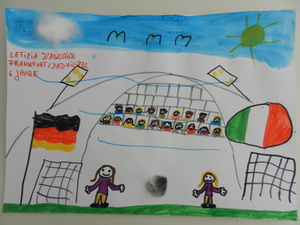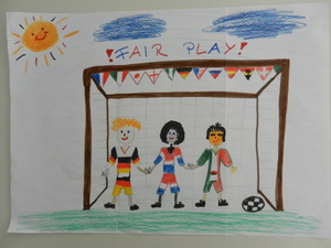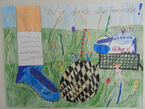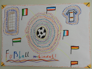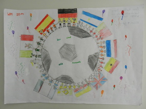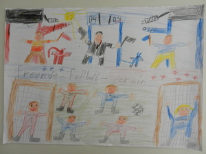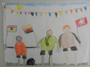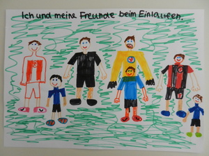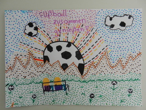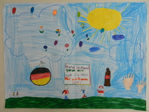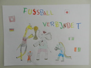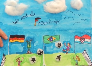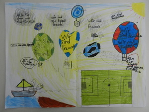 Male uns ein Bild mit dem Motto „Zur Fußball-Weltmeisterschaft 2014 sind wir alle Freunde. Male Dein schönstes Erlebnis mit Deinen Freunden!“